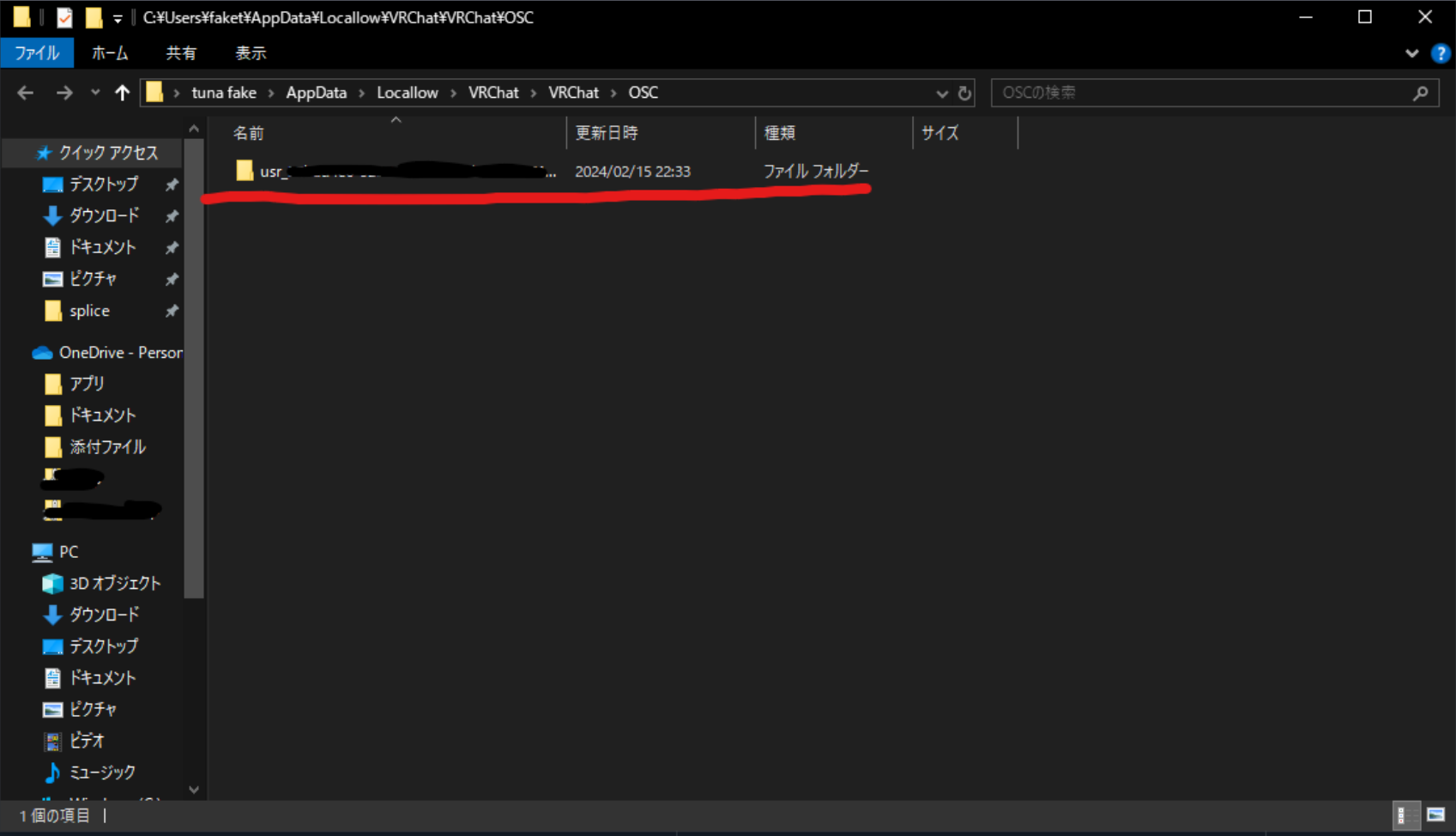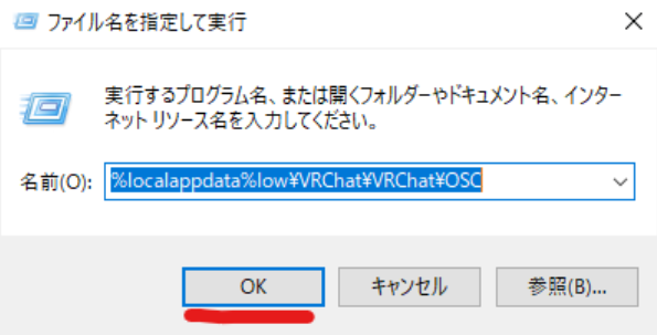 %localappdata%low\VRChat\VRChat\OSC を入力欄に入れてOKを押します。