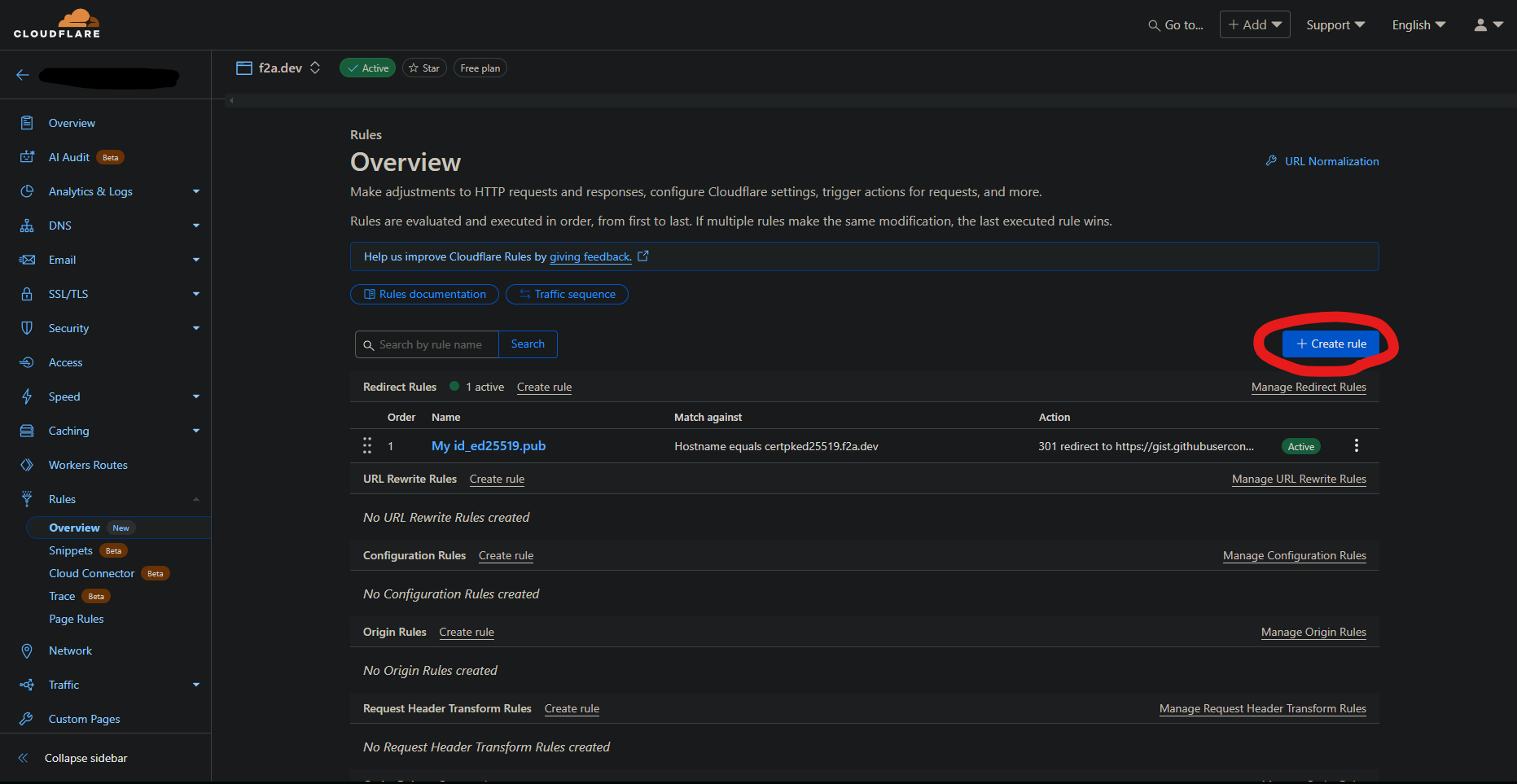 Create ruleをクリック