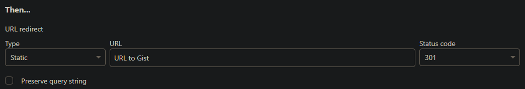 Client -> Cloudflare(example.com) -> Cloudflare Rules -> 301 Redirect -> GitHub Gist